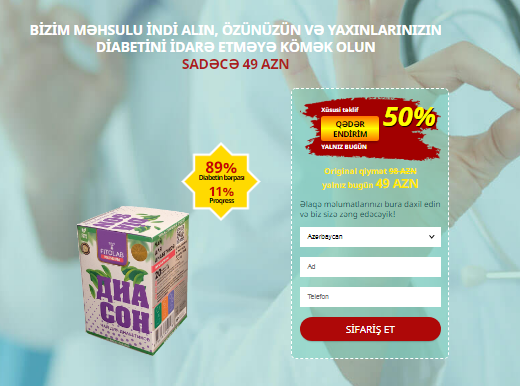 Diabetik çayı bu sayt vasitəsilə onlayn sifariş etmək olar. Sifariş prosesidirsadə - formada əlaqə məlumatlarınızı daxil edin və Diabetik çay ən qısa zamanda ev ünvanınıza çatdırılacaq.